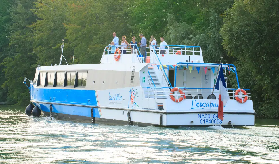 Après cette matinée riche en découvertes et en saveurs, laissez-vous porter par la douceur de vivre lors d’un déjeuner-croisière sur la rivière Oise. À bord de l’Escapade, vous prendrez place dans un bateau confortable et chaleureux, spécialement aménagé pour profiter pleinement du paysage fluvial.