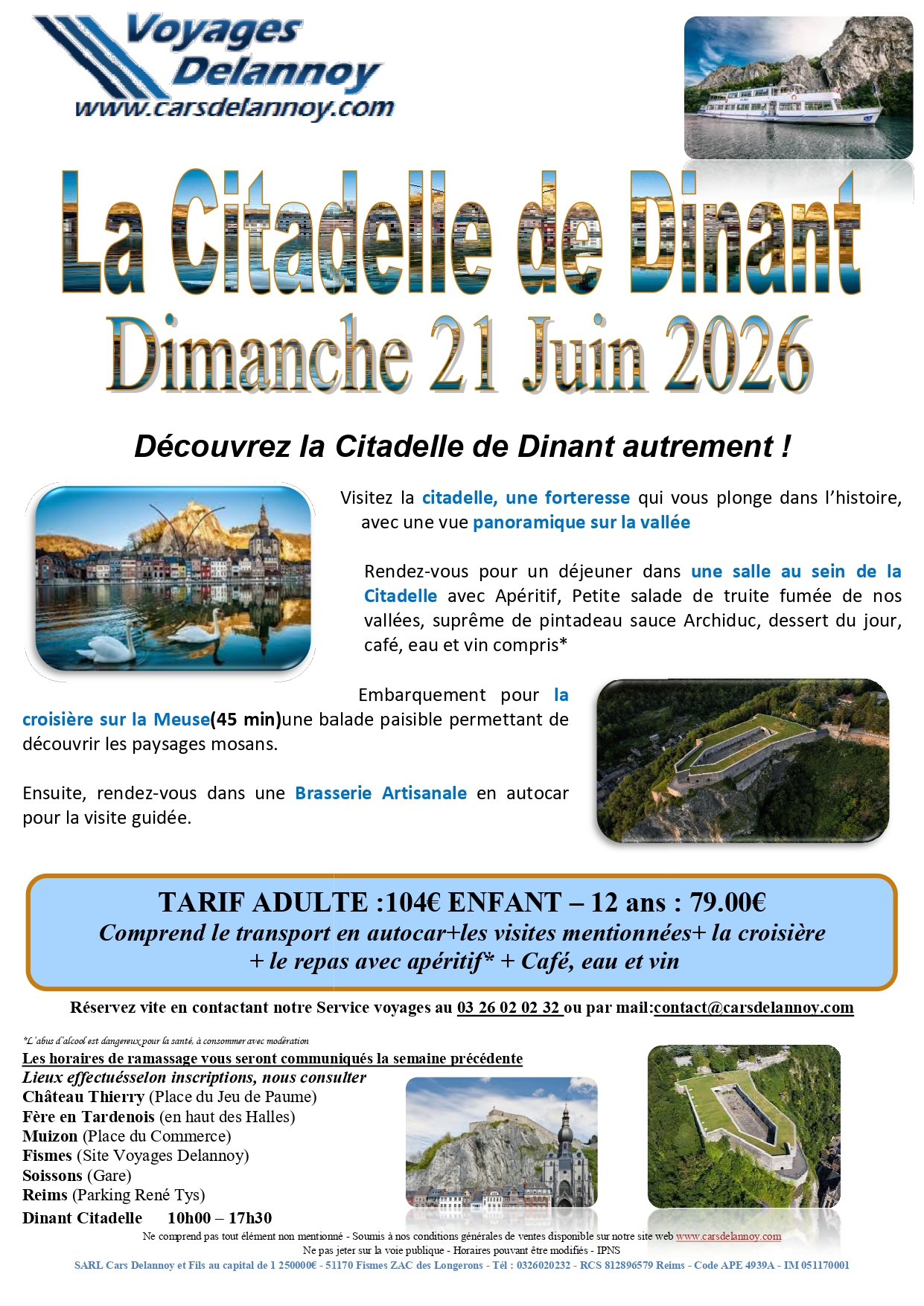 Ne comprend pas tout élément non mentionné - Soumis à nos conditions générales de ventes - Horaires pouvant être modifiés - Assurance rapatriement: 29,00 € / personne (précisez si vous refusez) ~ Assurance annulation (voir bulletin d’inscription)- *L’abus d’alcool est dangereux pour la santé, à consommer avec modération.